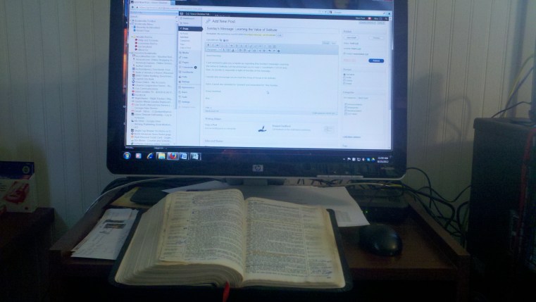 Sunday’s Message: Learning the Value of Solitude 15 Wednesday Aug 2012 Original size at 3264 × 1840 ≈ Leave a comment Preparing to Preach!